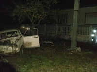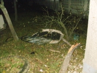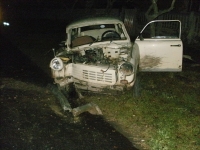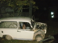 A jelzett helyen egy Trabant tpus gpjrm az trl letrt, az t melletti villanyoszlopnak csapdott. A becsapds erejt jl mutatja, hogy a beton villanyoszlopot kittte a helyrl s krlbell 50 cm-el odbb ttte. A gpjrm vezetje a kirkezsnk eltt elhagyta a helysznt. t a Rendrsg sem tallta meg. Az aut akkumultora az tkzs kvetkeztben kireplt a gpjrmbl. Az MSZ szakemberei az oszlopban keletkezett krt kijavtottk.