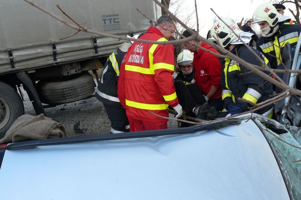 A helysznre Vonult a Kka/I, Kta/I, Monor/ I, Monor/ Plya, Slysp TE. Jelzett helyen egy sz.g.k. s egy kamion tkztt, a kamion az t melletti szntsba csszott, a sz.g.k. az t melletti rokba csapdott. A Peugeot szemlygpkocsiban egy srlt be volt szorulva. t a Kka TE tagjai feszt vg segtsgvel az autbl kiszabadtottk, majd a mentsknek tadtk. Elsdleges vizsglatok szerint a sofr nem srlt komolyabban, de megfigyelsre az Orszgos Baleseti Intzetbe szlltottk.