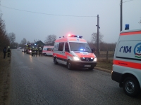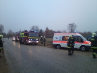A krhelyre a Kka/I, a Kta/I vonult. Tovbb 3 db menaut rkezett a helysznre. A jelzett helyen egy Ford Transit tpus kisbusz egy les kanyarban jeges aszfalton megcsszott, letrt az trl tbb mteren keresztl kidnttte az t melletti kertst. Az autt a kovcsoltvas kapu s a betonoszlop lltotta meg. A gpjrm ramtalantst a nagyktai kollgkkal kzsen elvgeztk, majd a ments kollgknak segdkeztnk a srltek autbl trtn kiemelsben s hordgyra ttelben. A helysznrl a mentk 2 f knny s 2 f slyos srltet szlltottak el a krhzba.