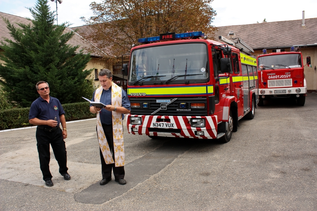 2009. szeptember 30.-n dleltt 11 rakor kezddtt az tad. Az nnepsgen rszt vett Dawn McKen, a Brit Nagykvetsg nagykvetnek helyettese, Fber Dniel, a Brit Nagykvetsg helyettes sajttitkra, az angliai Shropshire tzoltsgnak kpviseletben Stuart West, Andy Bevon, Rob Sheppard, Ian Johnson, Tony Barnes s Nick Herbert, Tth Gbor orszggylsi kpvisel, Juhsz Ildik, Kka kzsg polgrmestere, dr. Bende Pter tzolt vezrrnagy, fvrosi parancsnok, a Magyar Tzolt Szvetsg elnke, Dr. habil. Cziva Oszkr tzolt ezredes, a Budapesti Tzolt Szvetsg elnke, Dr. Zoltn Ferenc tzolt ezredes, a Pest Megyei Katasztrfavdelmi Igazgatsg igazgatja, Nyers Istvn ny.t. rnagy a Kkai nkntes Tzolt Egyeslet elnke illetve vezetsge s tagsga. Nagy szmban megjelentek a krnyez nkntes tzolt egyesletek kpviseli, illetve Nagykta HT parancsnoka, Torba Csaba is. A ksznt s a mltat beszdek utn Kka kzsg plbnosa, Dbis Zaln atya megszentelte a Volvo -t. Ezutn egy barti hangulat ebd kvetkezett, illetve ajndkok tadsa, majd egy nptnc bemutat. A rendezvnyen Dr. Bende Pter bejelentette, hogy a plyzat feltteleknt, a Csepel T-1.1 tpus gpjrmvnket a Balatongyrk TE kapja meg.